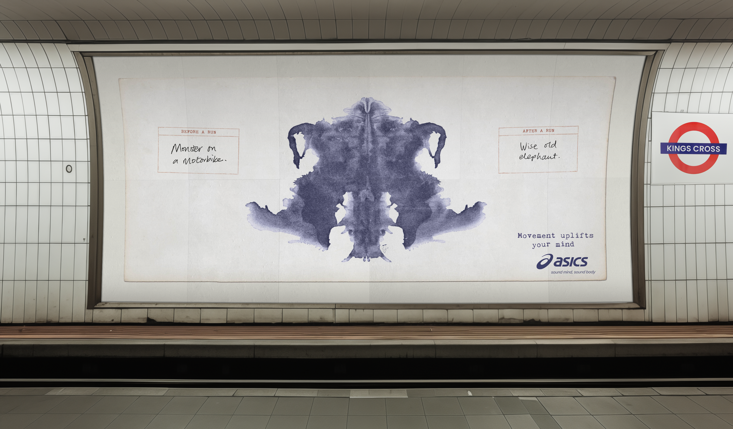 ASICS was founded on the understanding that movement uplifts body AND mind. But while it's easy to show physical achievement, it's more challenging to show what's happening in the mind. This work was based on the iconic Rorschach inkblot tests, which have long been used by psychologists to analyse the workings of the human brain.